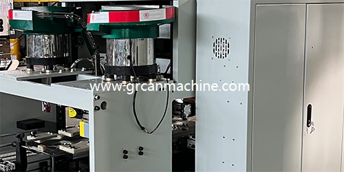 Macchina automatica per formare e inserire manico in ferro con manopola su bidoni